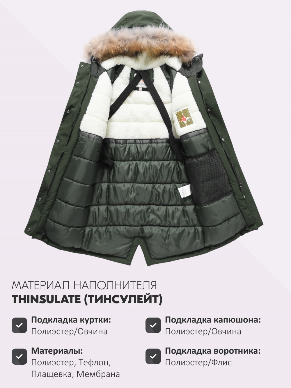 - Материал подкладки куртки